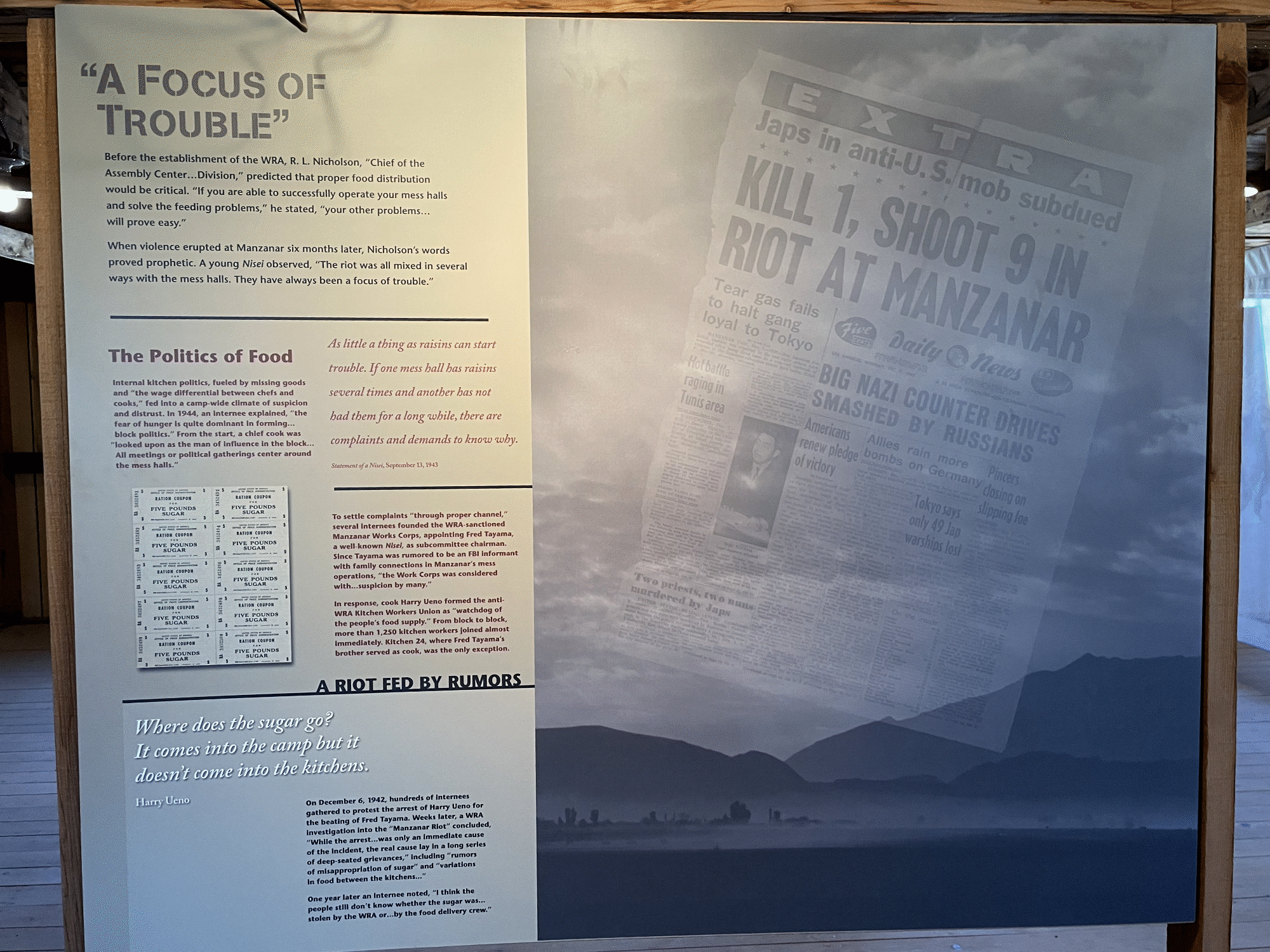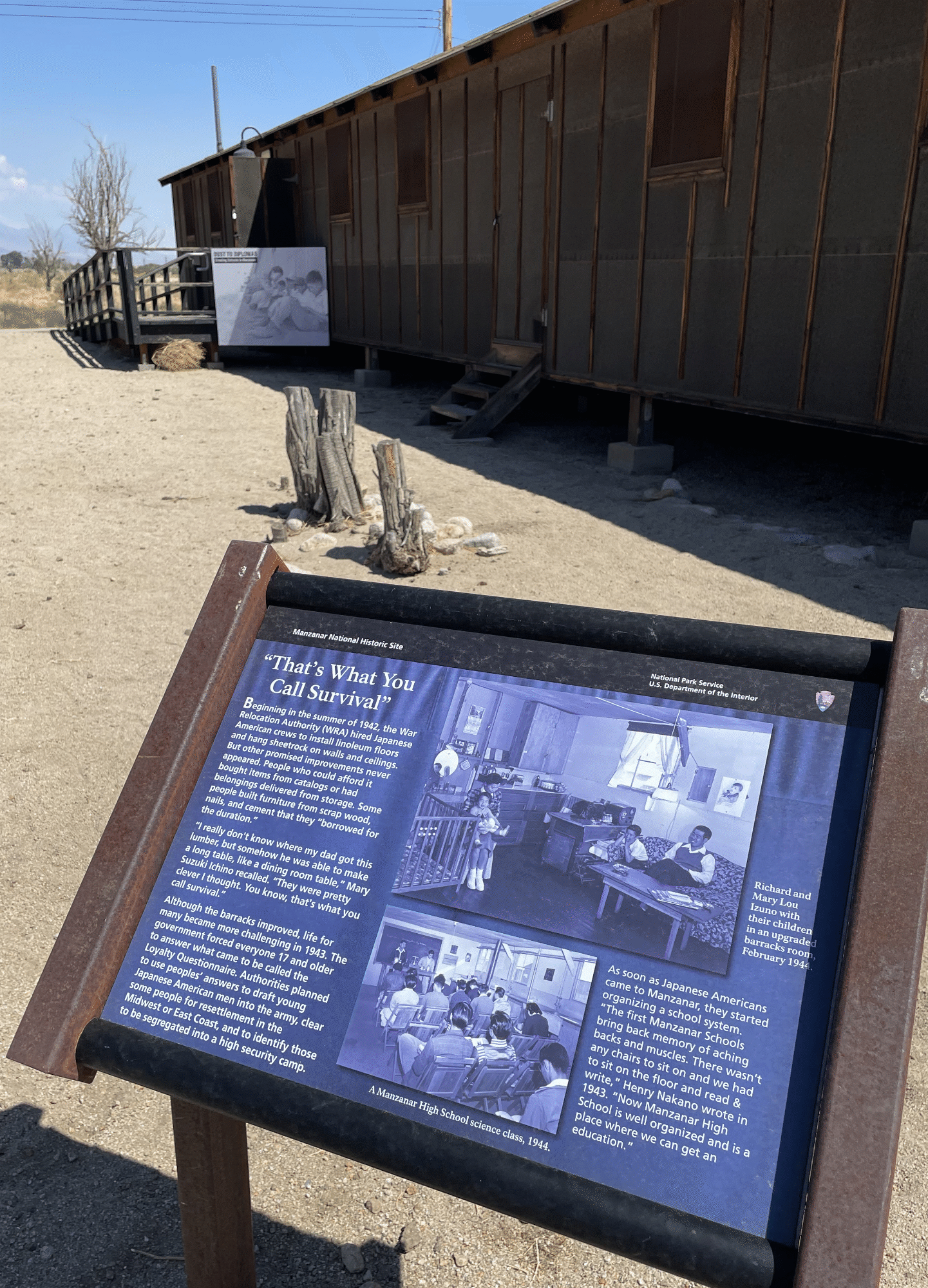 Manzanar is not just a monument to a historical moment in time, it’s a monument of failure. Specifically the failure of political leadership, war hysteria, and racial prejudice.