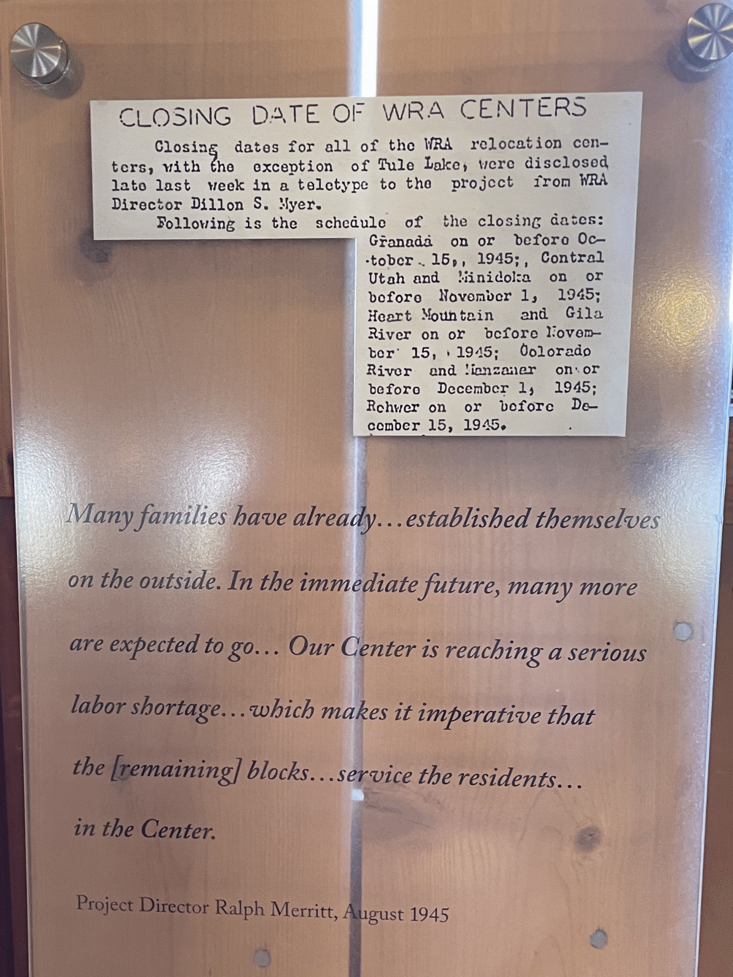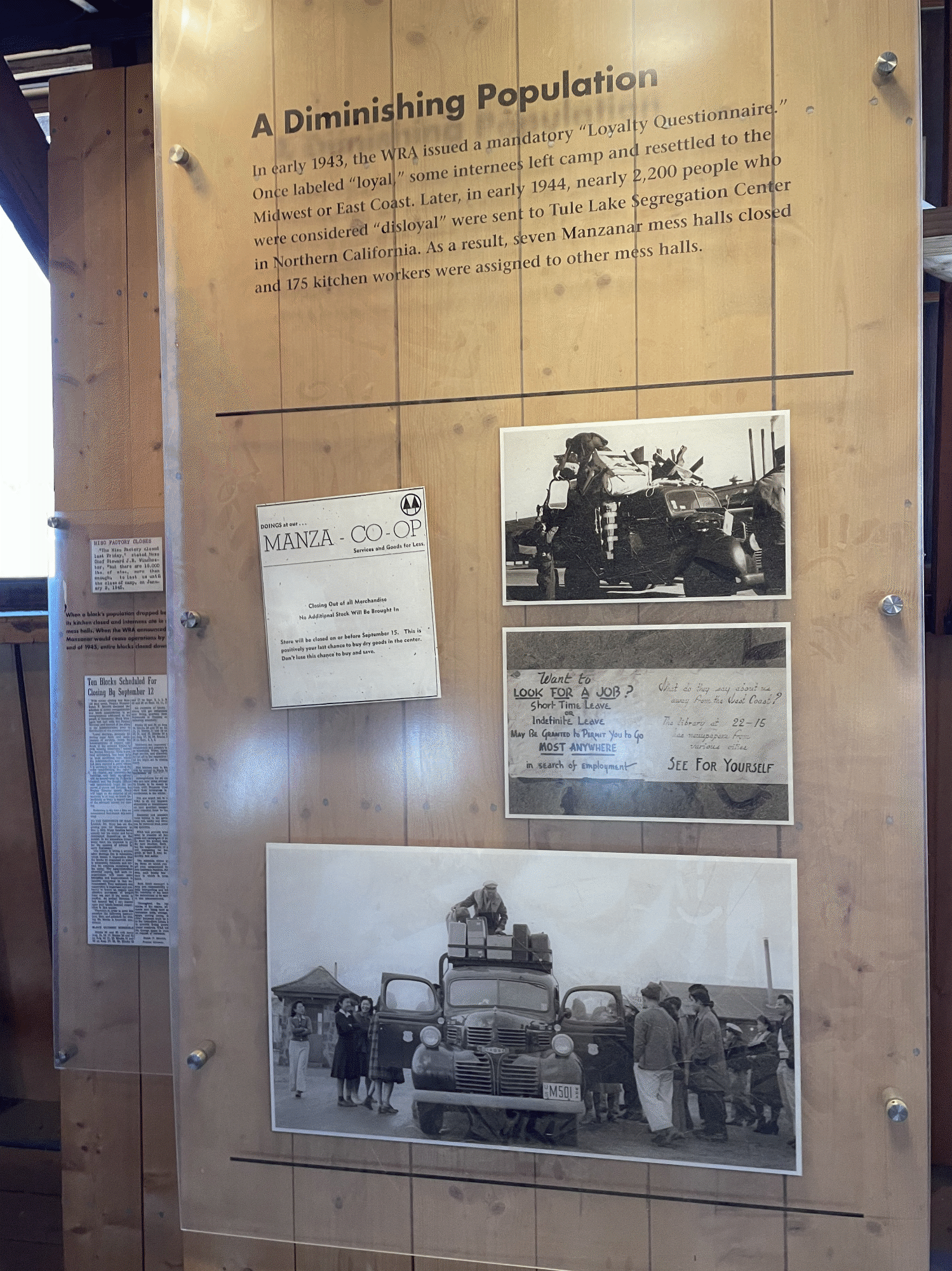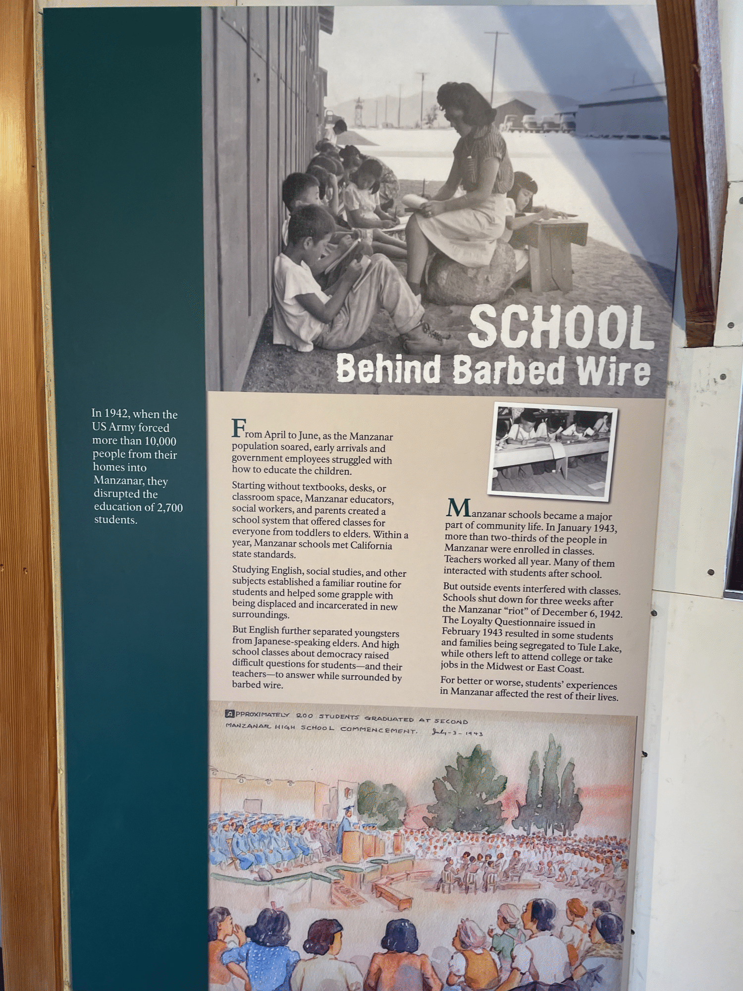 In 1945, Manzanar didn't close due to a change of heart by the government. It closed because it was forced to by the law and the ending of the war.