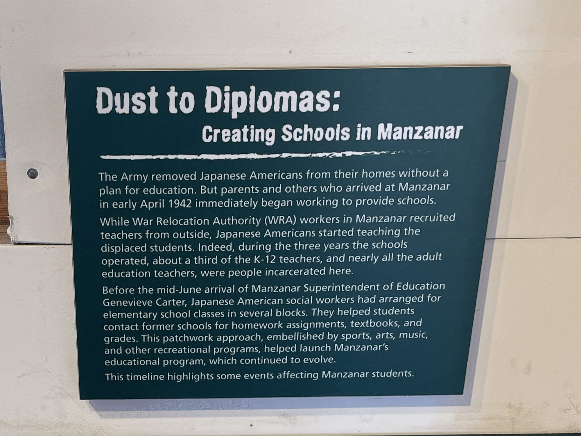 ** Signage and exhibits at Manzanar National Historic Site have been subjected to review and potential removal under a 2025 federal directive targeting content deemed to disparage U.S. history. In an effort to do my part in preserving history, below are the exhibit signs from the Manzanar National Historic Site taken during my visit in July, 2024, in no particular order.