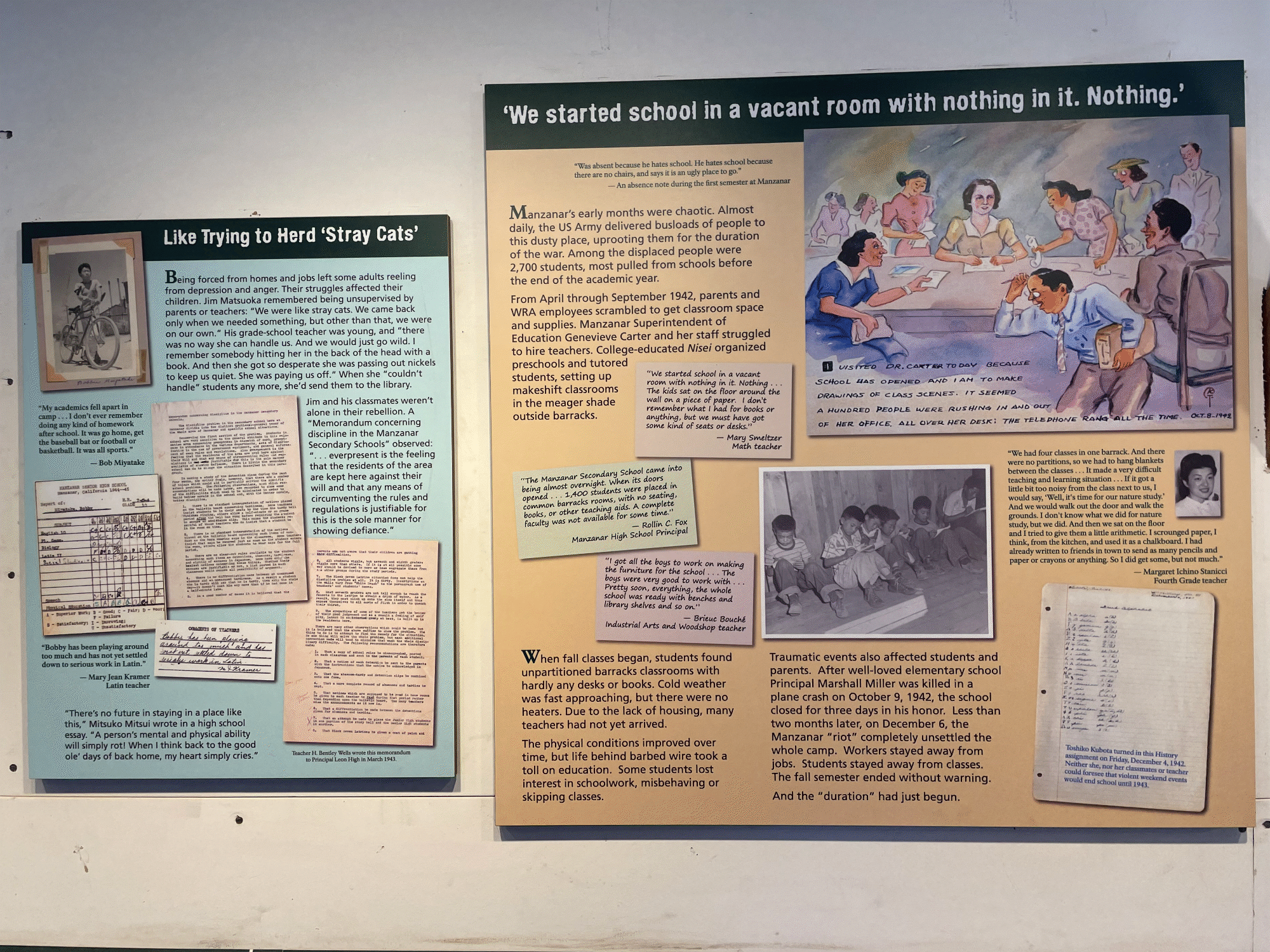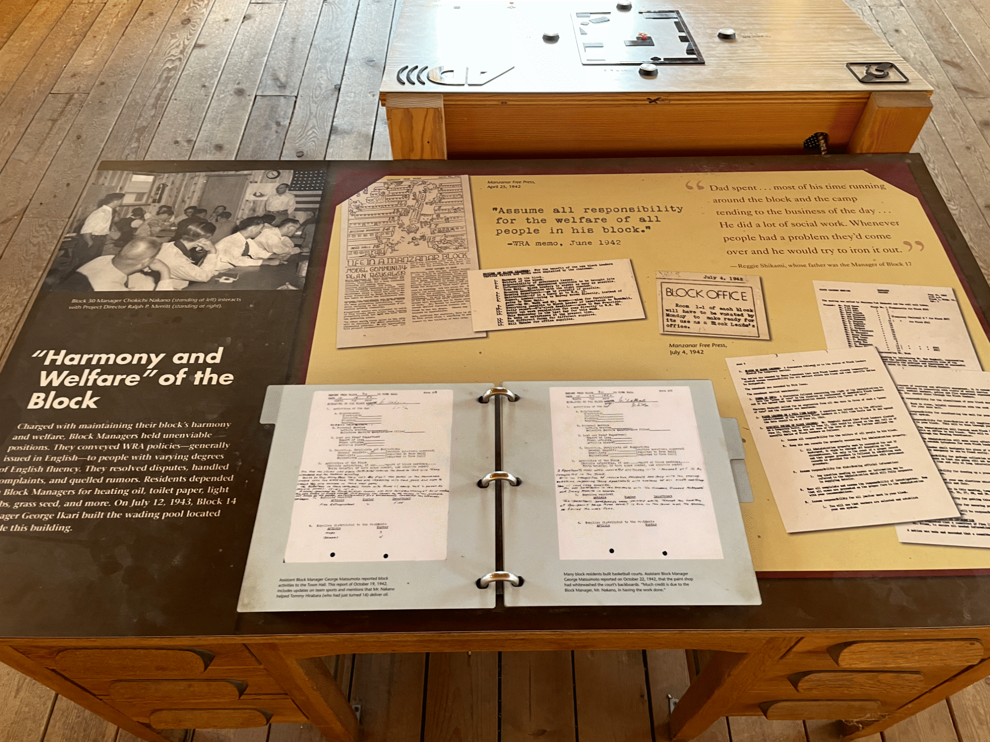 Even amongst the barbed wire and the searchlights that swept the camp at night, those incarcerated did their best to build any semblance of community that they could. They established schools, churches and even lush Japanese gardens, all while living under the constant watch of armed guards that perched in eight towers that surrounded the camp.
