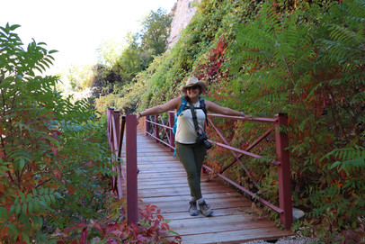 Once parked, we evaluated the available hiking trails and walked through the initial park grounds, taking in the beauty of sprawling vines, deciduous trees, rose bushes and flowers. Not only was I captivated by the gardens, themselves, I was also amazed at the number of amenities the park had available. From a small spring-fed wading pool to volleyball courts, horseshoe pits and a playground, not to mention the ample picnic areas and impressive grilling arrangements.